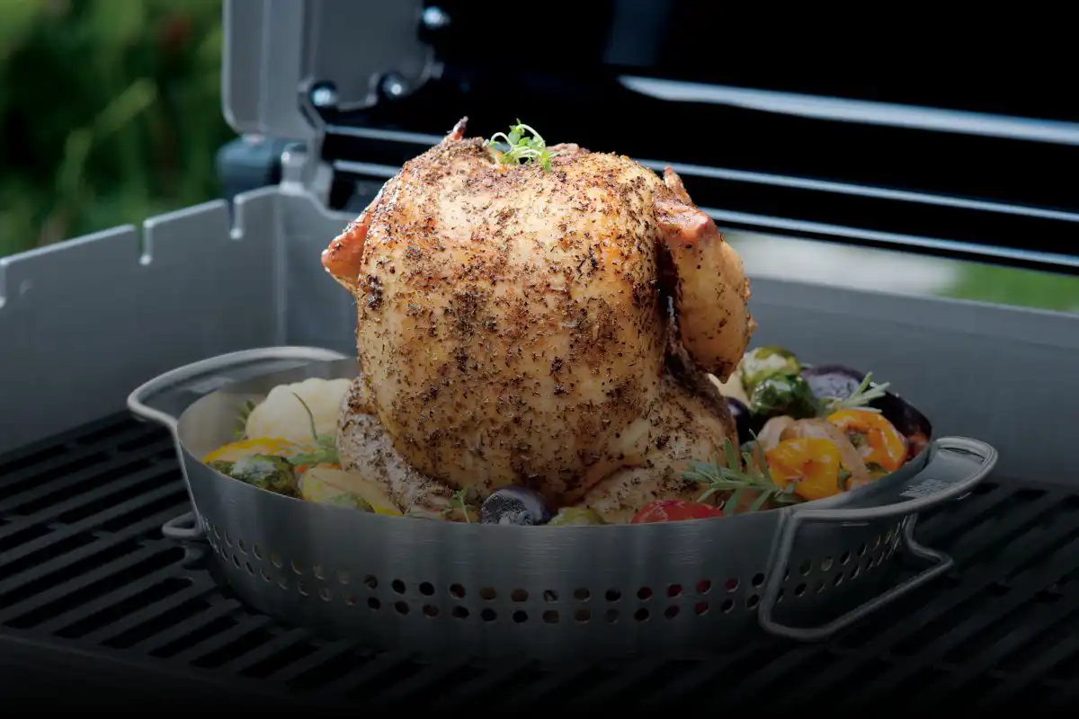 Un poulet contisé, un tian de légumes, le rôti du dimanche … Tout est possible avec les paniers à légumes et supports multi-cuissons Weber !