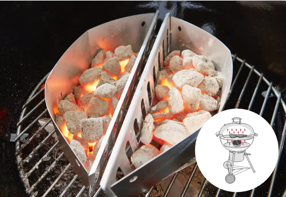 Ne ratez plus jamais l’allumage de votre barbecue ! Avec la cheminée d’allumage brevetée Weber, obtenez des braises parfaites en 15 à 20 min chrono selon le combustible (charbon ou briquettes).