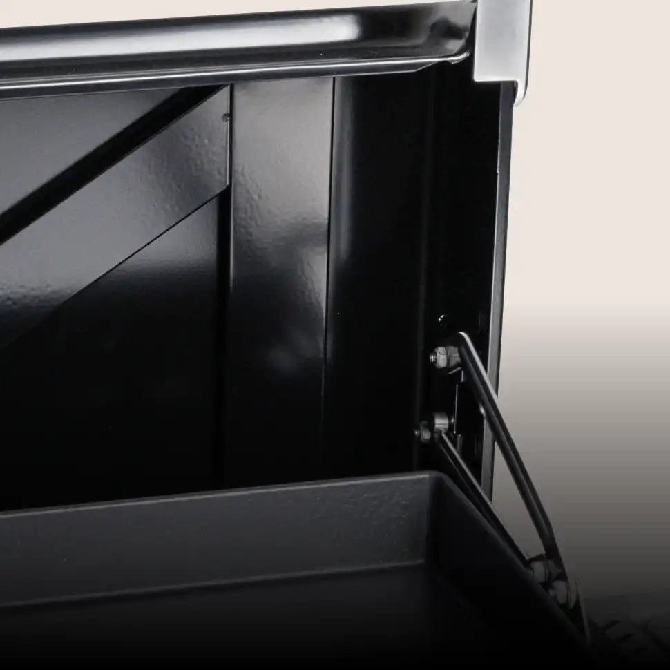 Le couvercle reste fermé et les grilles de cuisson restent en place automatiquement lorsque le barbecue est placé en position basse.
