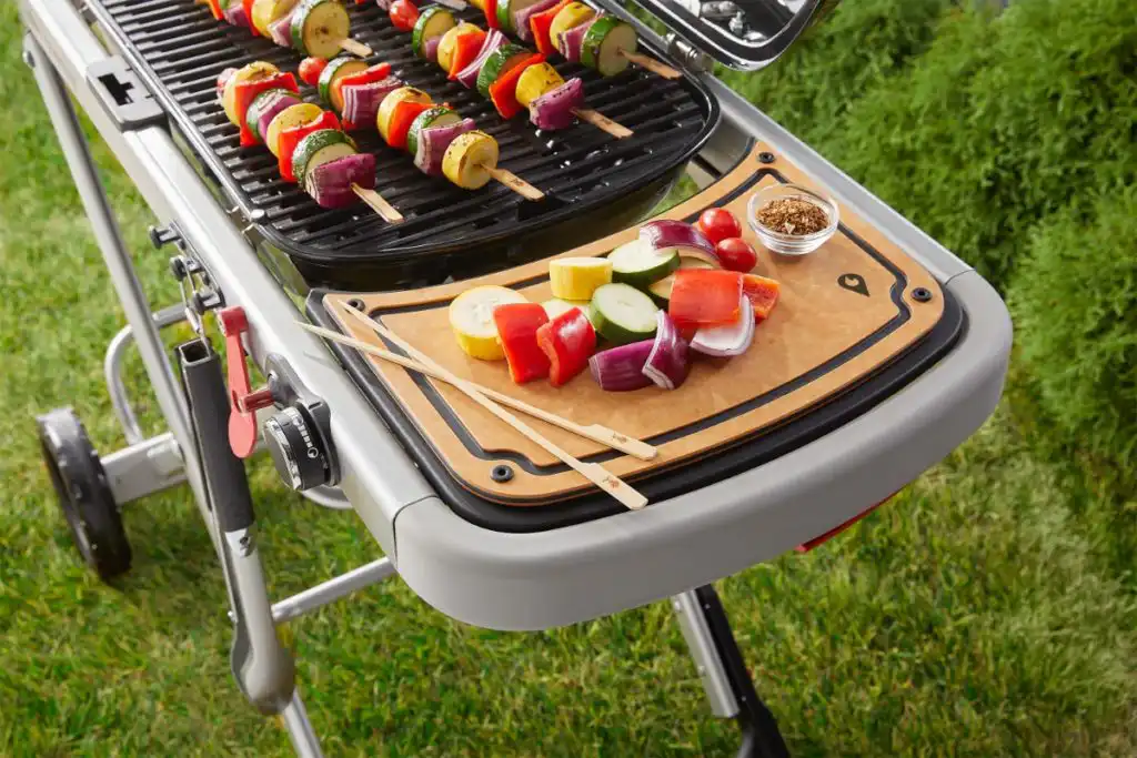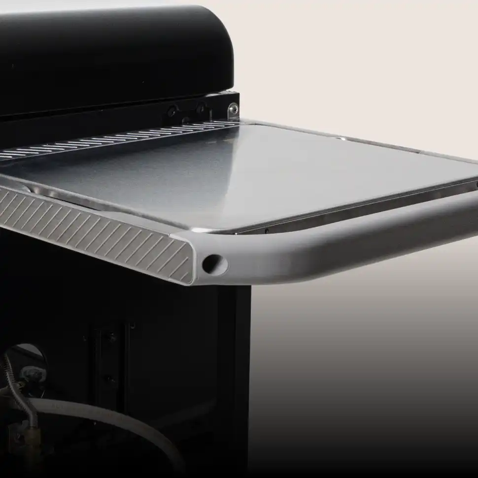 Préparez et servez le dîner à l’extérieur, là où la fête bat son plein, grâce à la large tablette de préparation et de service. Elle peut accueillir plusieurs plats de service et planches à découper, pour que tout soit à portée de main.